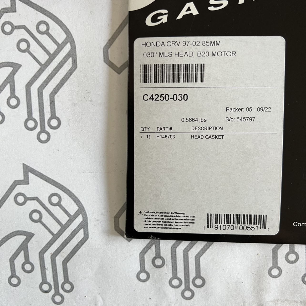EMPAQUE DE CABEZOTE COMETIC HONDA B20 NO VTEC 85MM A .030". P/N: c4250-030